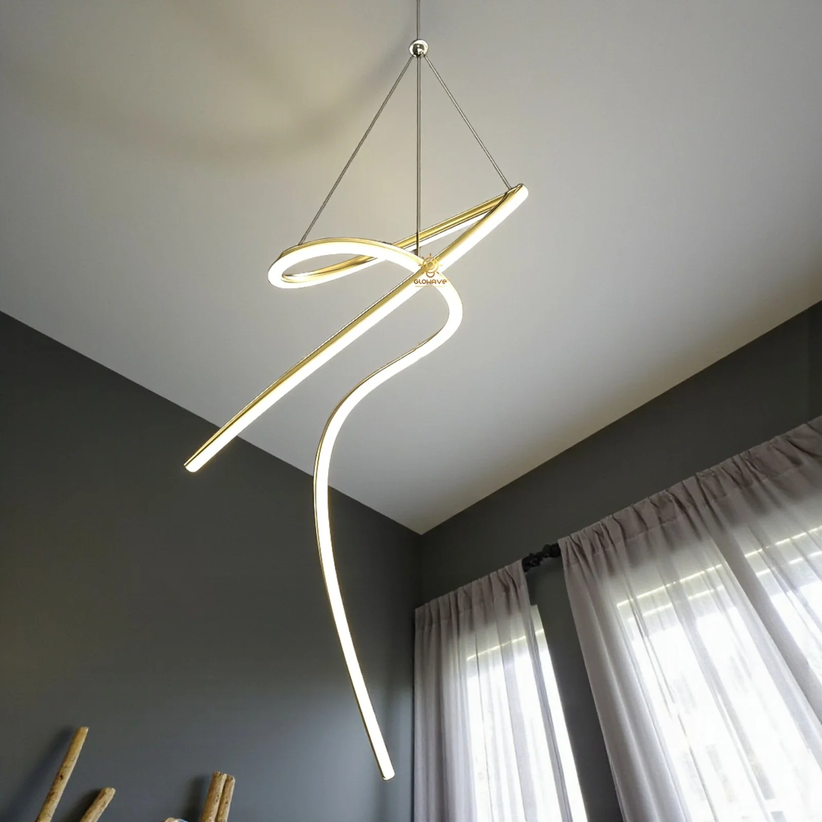Irregular Shape LED Light with Gold Finish Hanging Ceiling Light - Tricolour