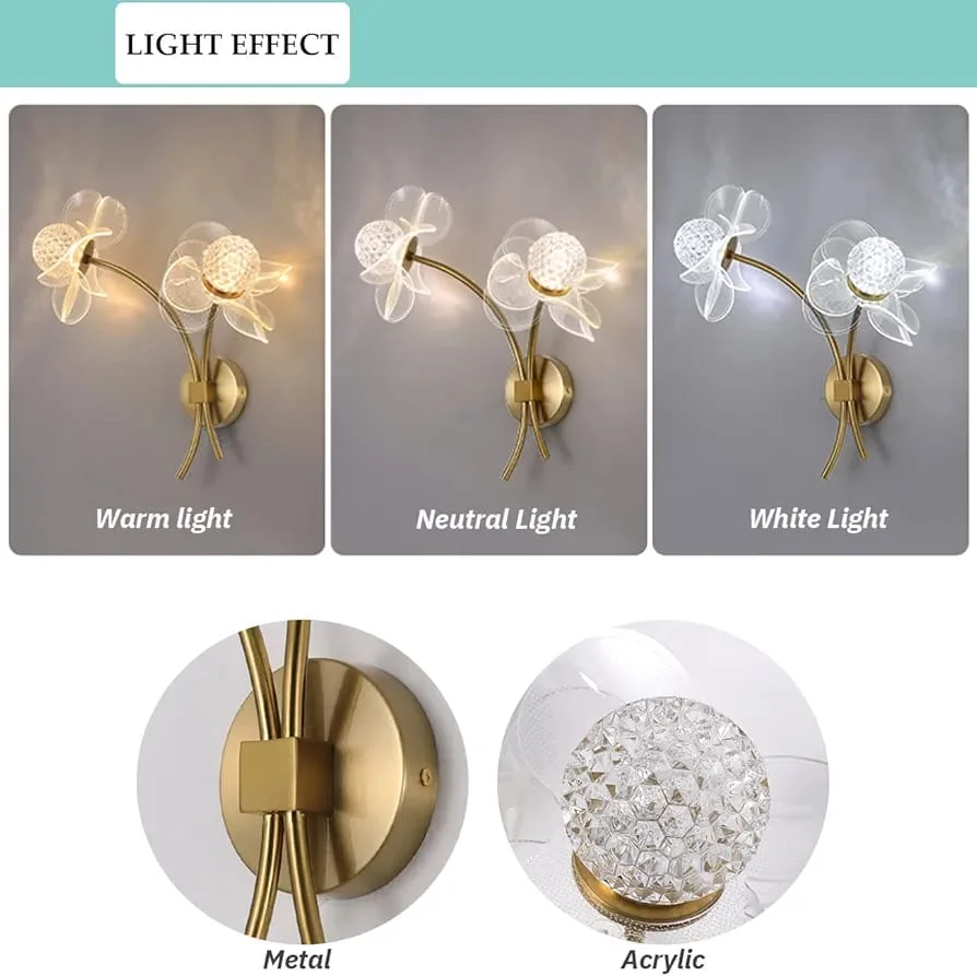 Golden Acrylic Flower Shape Wall Light - Tricolour