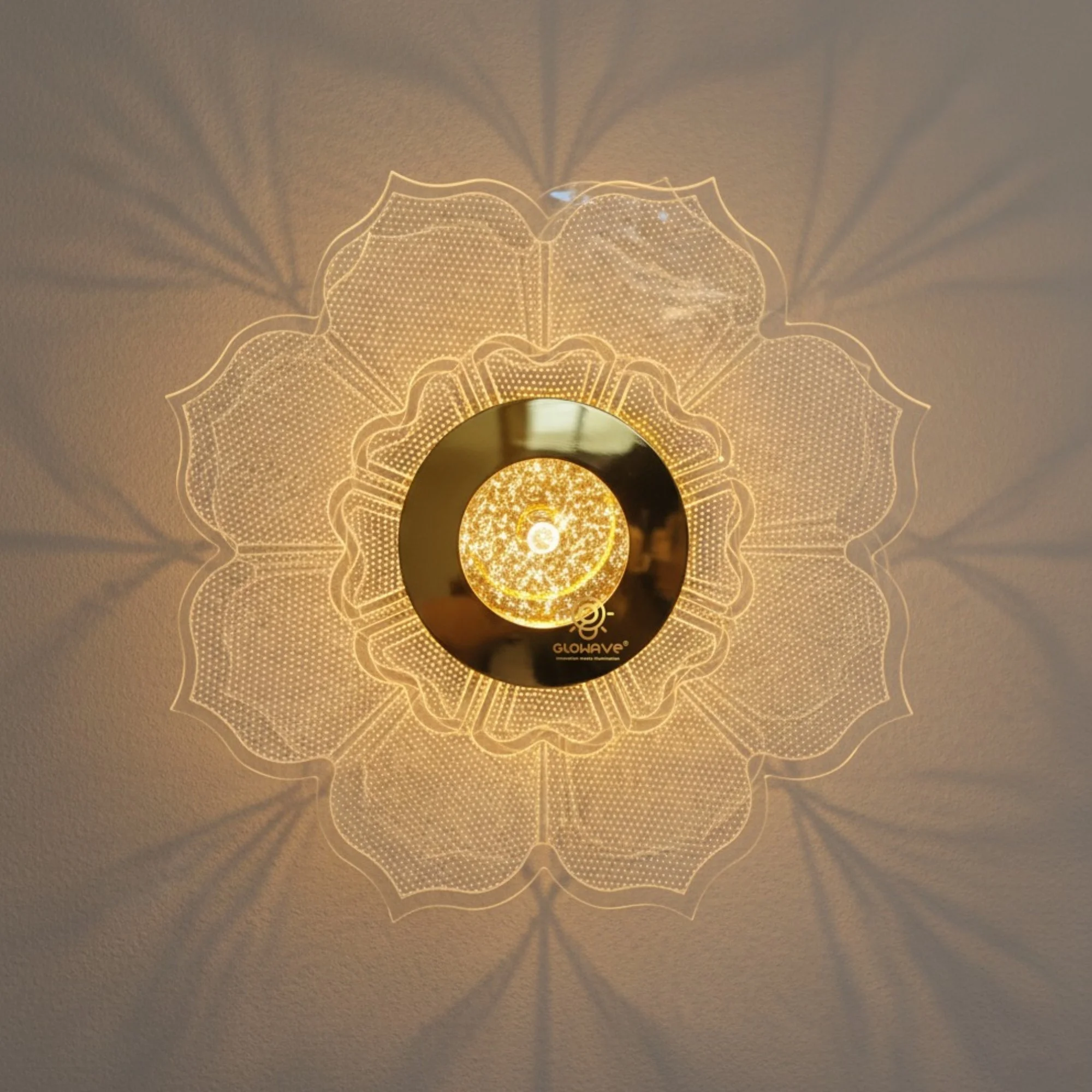 Golden Acrylic Light Round Flower Design Wall Lamp - Tricolour