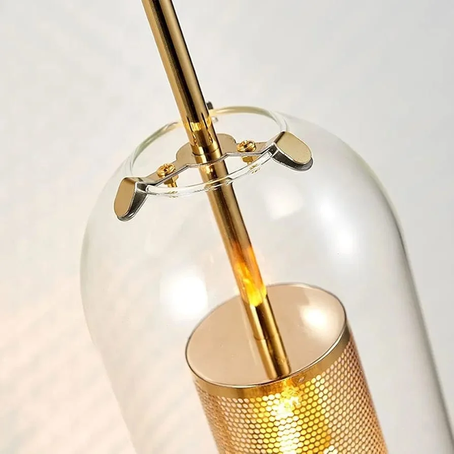 Add a touch of elegance with this Luxury Golden Capsule Glass Wall Light featuring a clear hanging glass shade and designer inner mesh diffuser. The premium gold finish and soft ambient glow make it perfect for bedrooms, living rooms, hallways, and modern interiors. Stylish, durable, and easy to install.