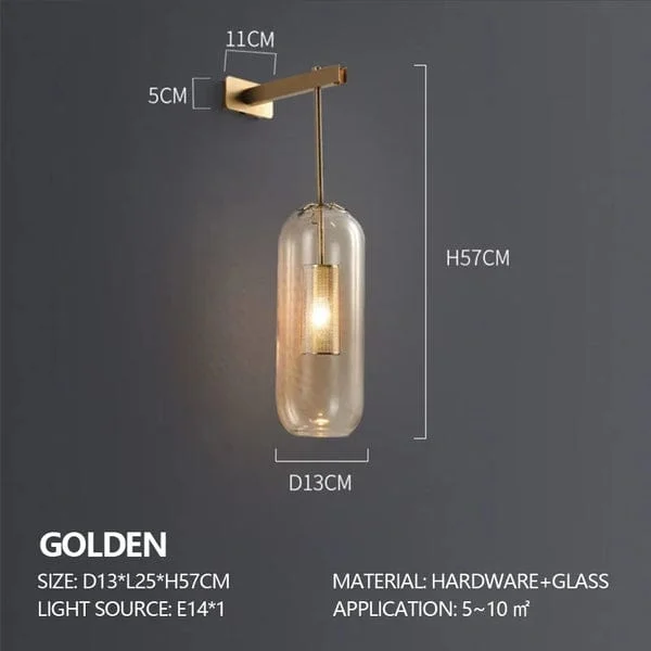 Golden Capsule Clear Glass Wall Light Hanging Sconce - Warm White