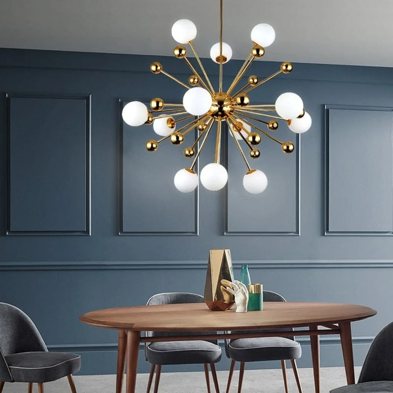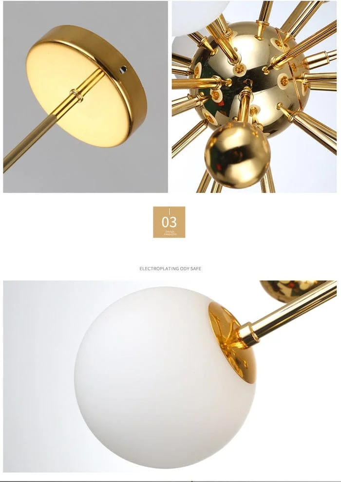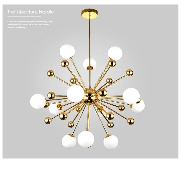 Golden 1200mm Long LED 12 Frosted Glass Balls Light Chandelier - Warm White