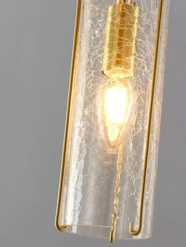 Golden Cylindrical Crackle Glass Shade 6 Lights Pendant Hanging Light - Warm White