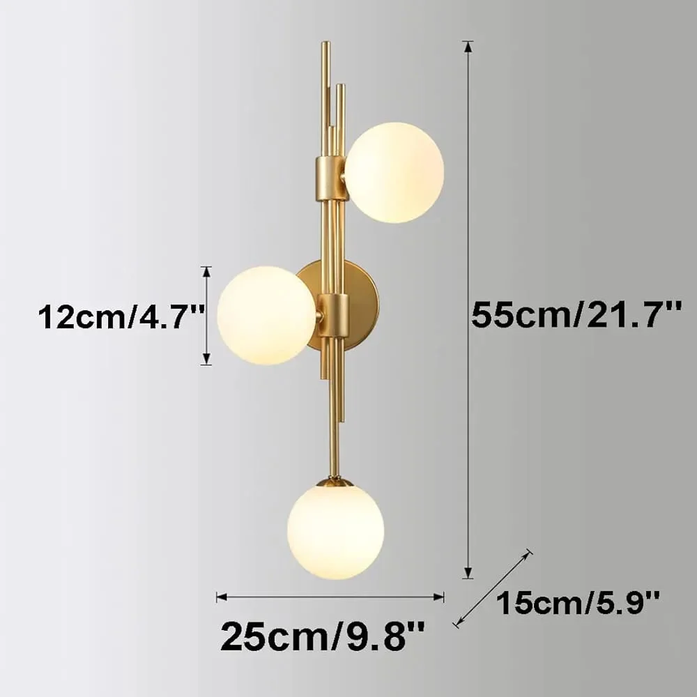 Golden Finish 3 White Glass Balls LED Wall Lamp - Warm White