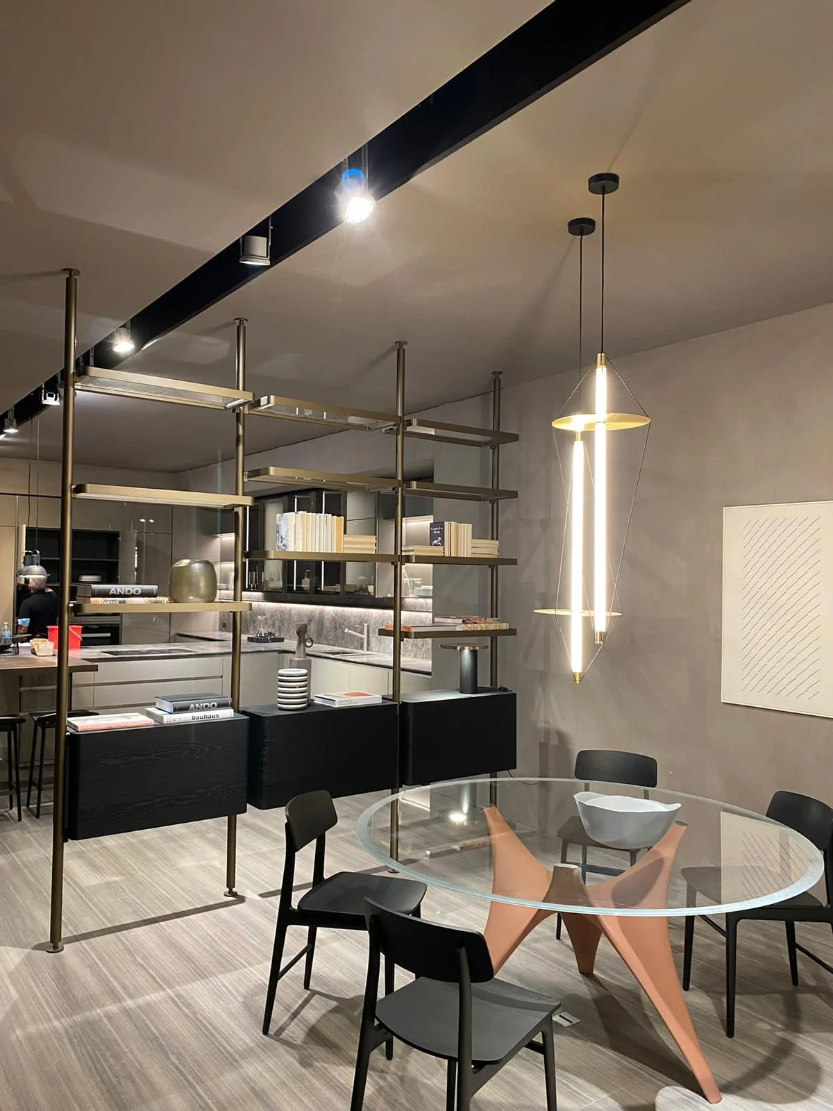 - Modern Designer Pendant Light – Elegant geometric wire-frame design with a slim vertical LED tube, adding a contemporary and artistic touch to premium interiors.