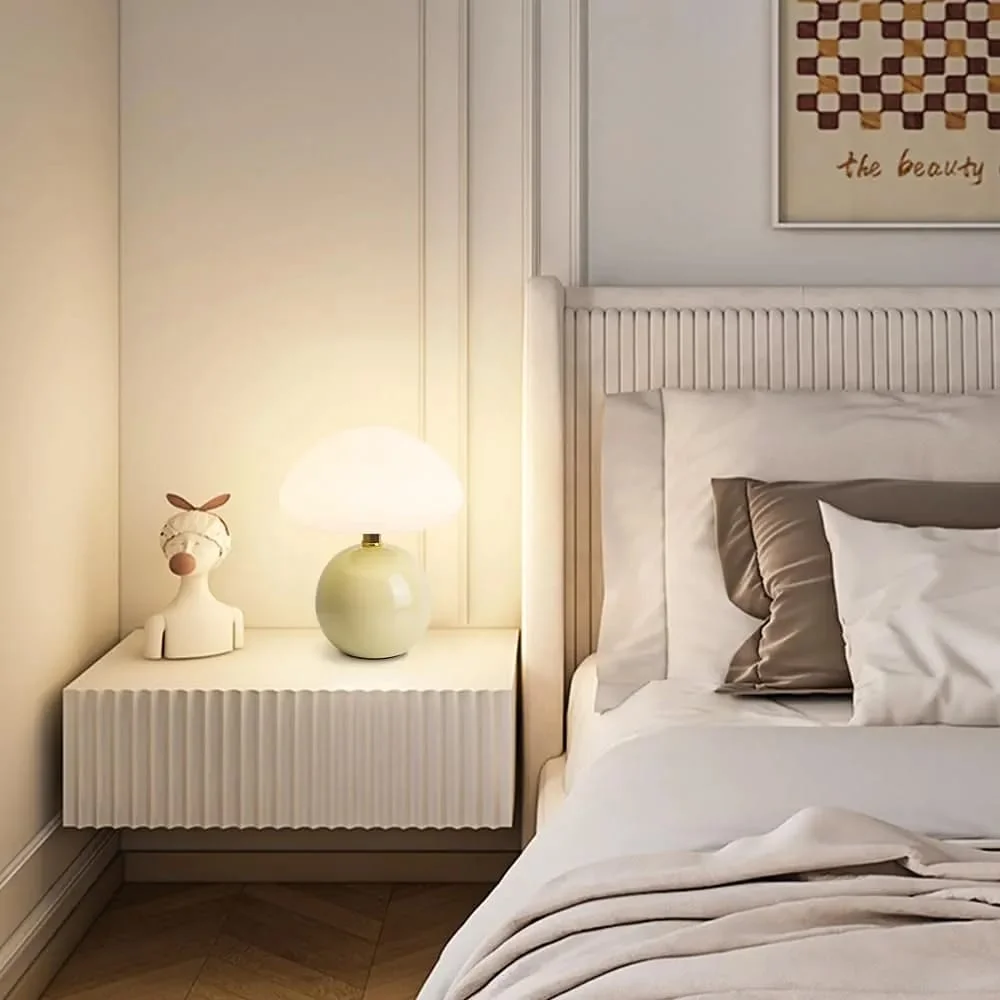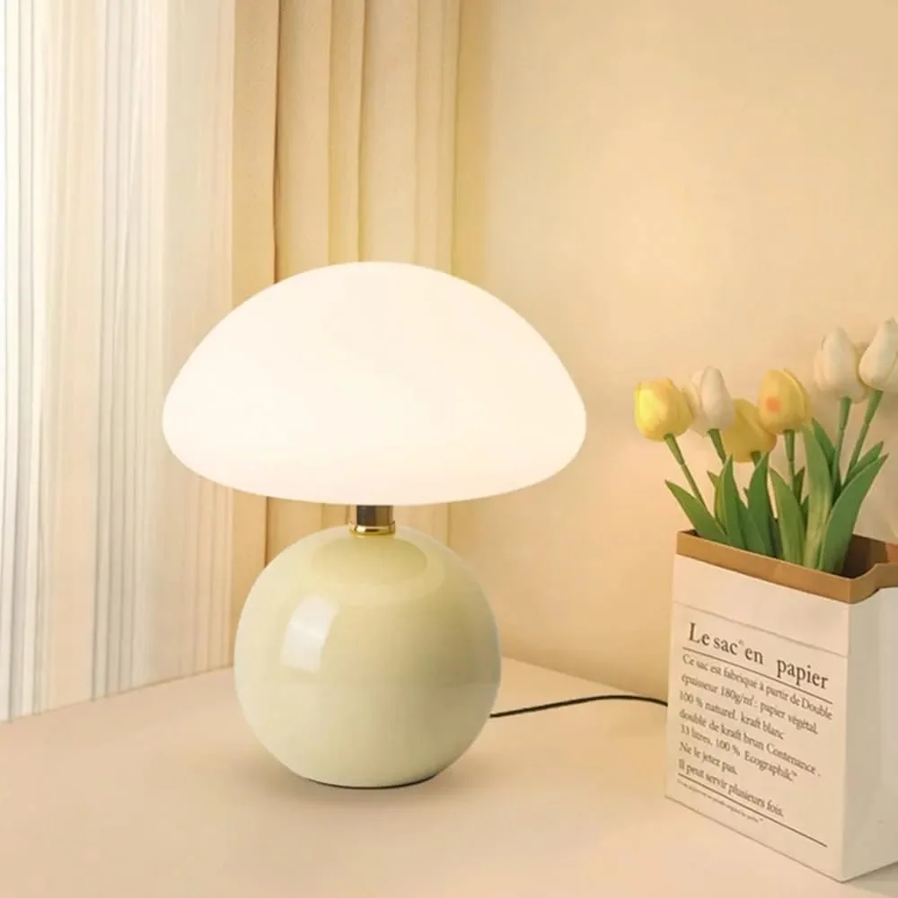 Light Pistachio Body Glass Table Lamp with Mushroom Shade