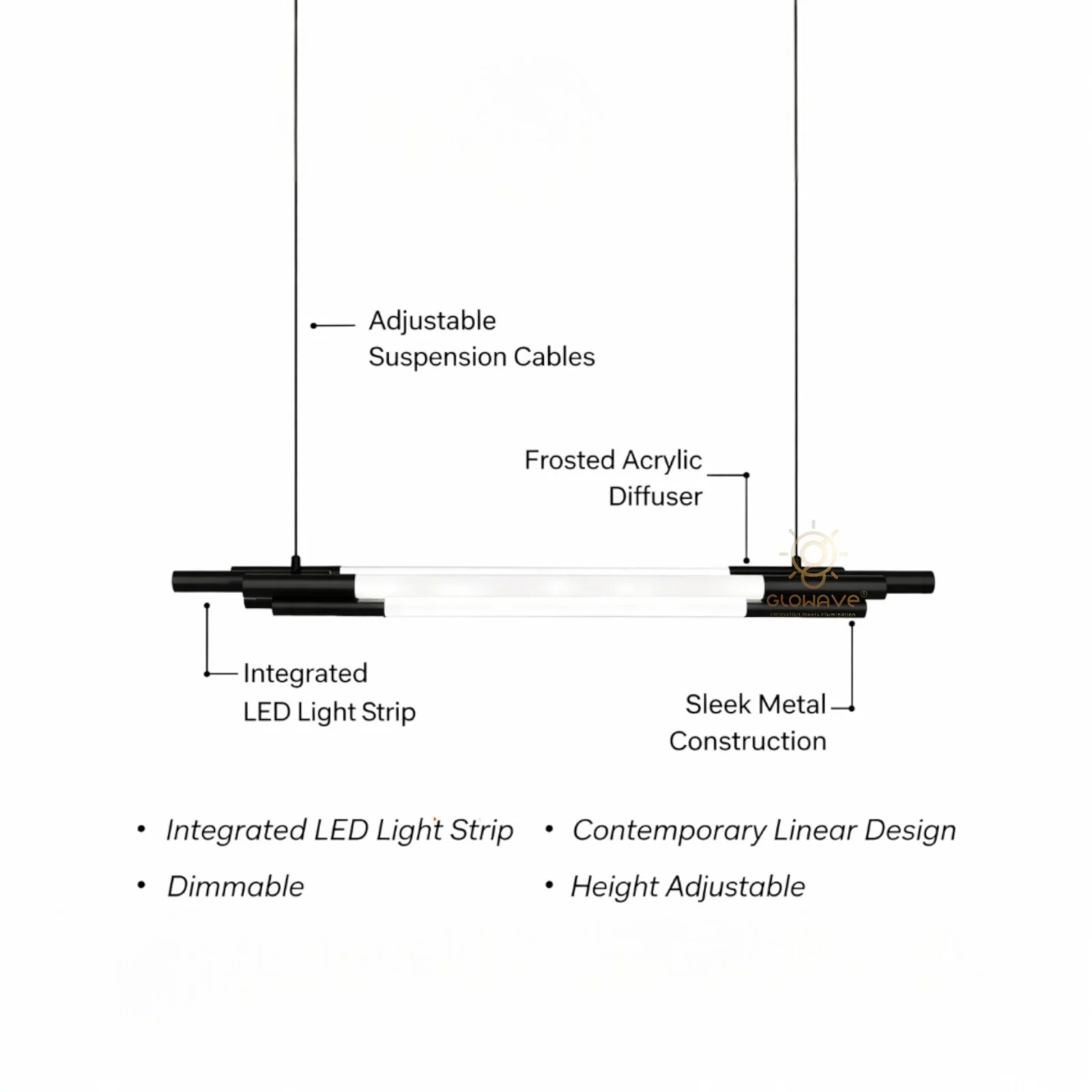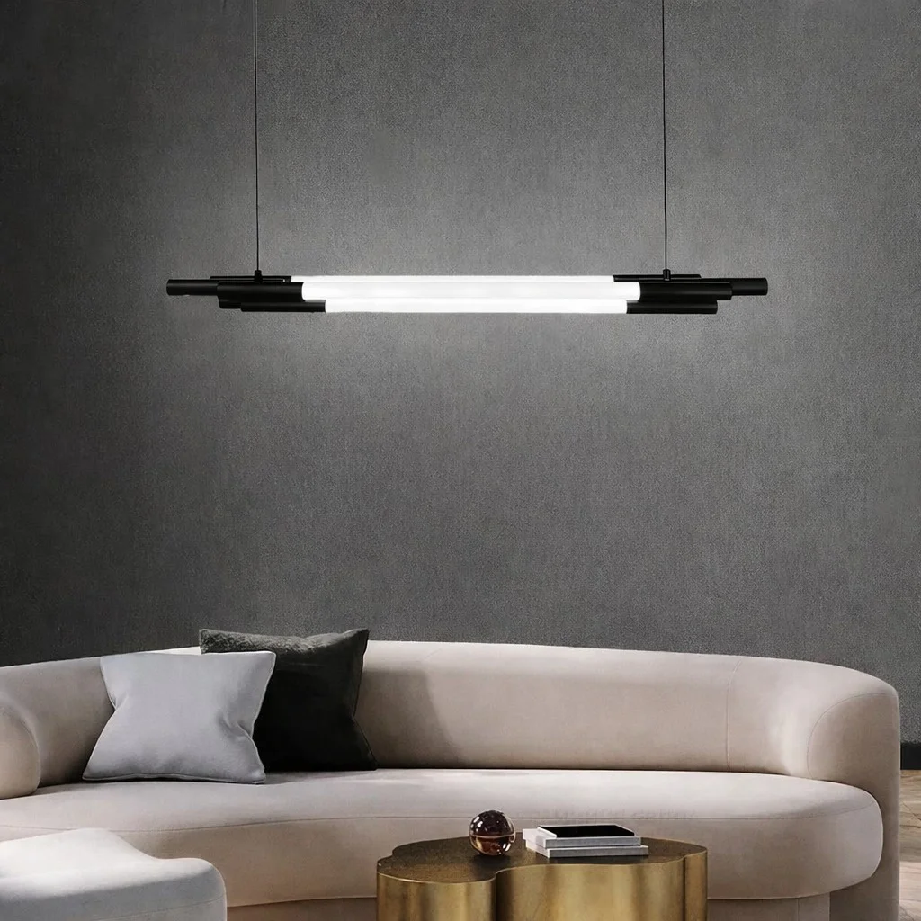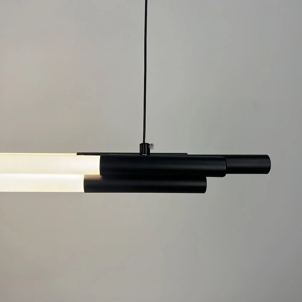 Upgrade your interior lighting with this modern linear LED hanging pendant light, designed to deliver a clean, architectural look with efficient illumination. Crafted with a sleek black metal body and a frosted diffuser, this pendant provides uniform, glare-free light that enhances the ambience of contemporary spaces. Its slim horizontal profile creates a striking visual element while maintaining a minimalist aesthetic.