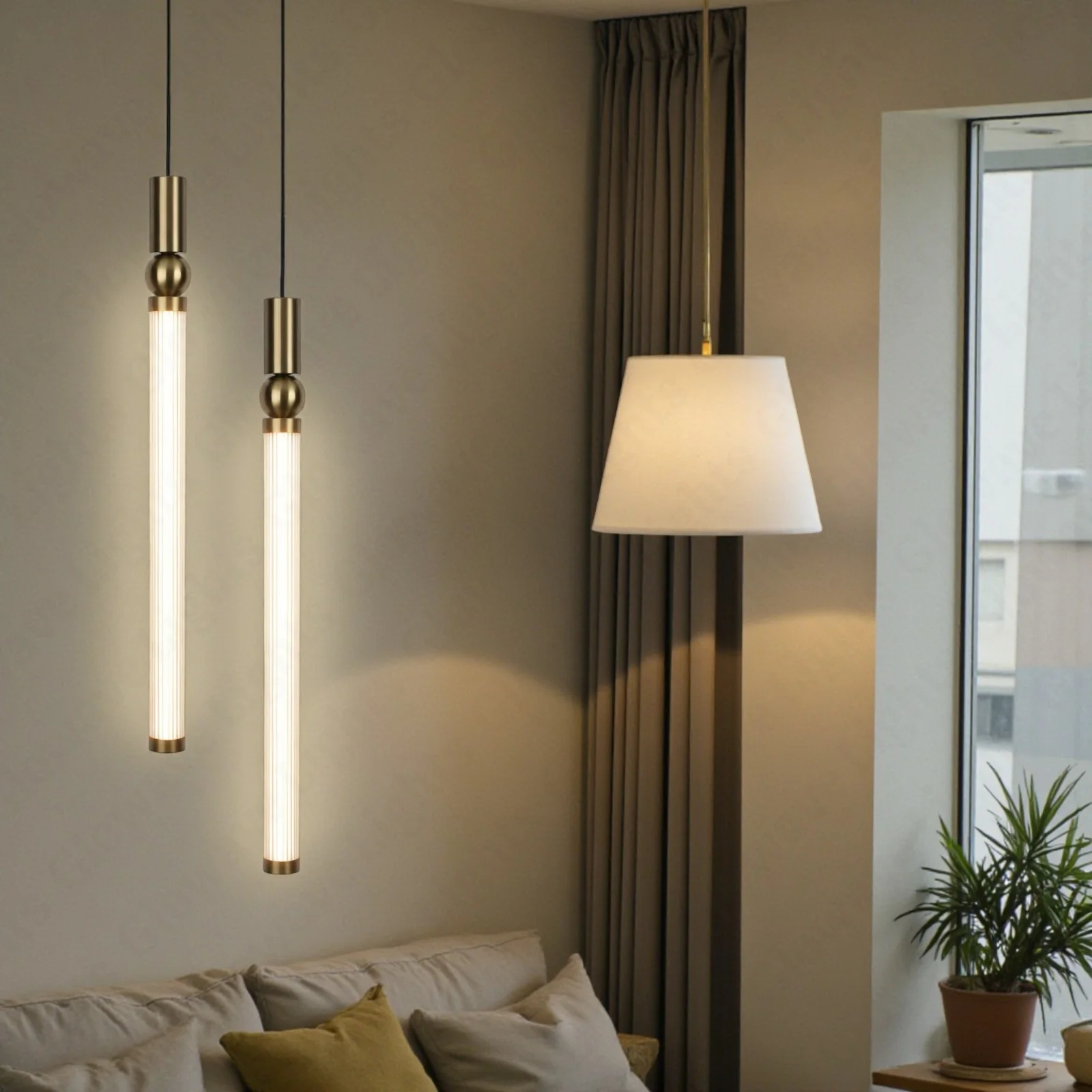 Long Tube LED Golden Cylinder Pendant Hanging Light - Tricolour