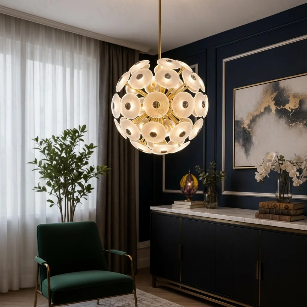 - Unique spherical chandelier design ensures 360° illumination, making it a perfect centerpiece for modern and classic décor.