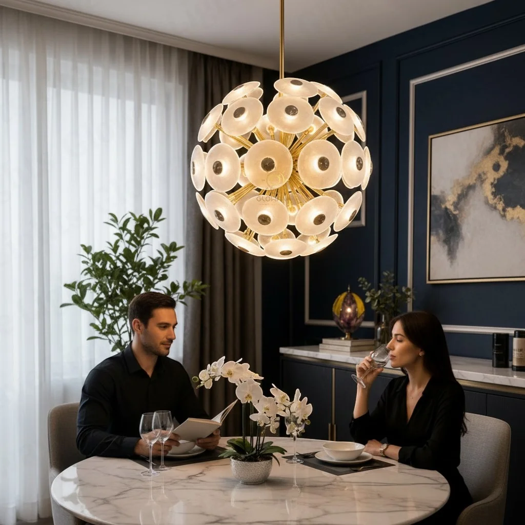 - Unique spherical chandelier design ensures 360° illumination, making it a perfect centerpiece for modern and classic décor.