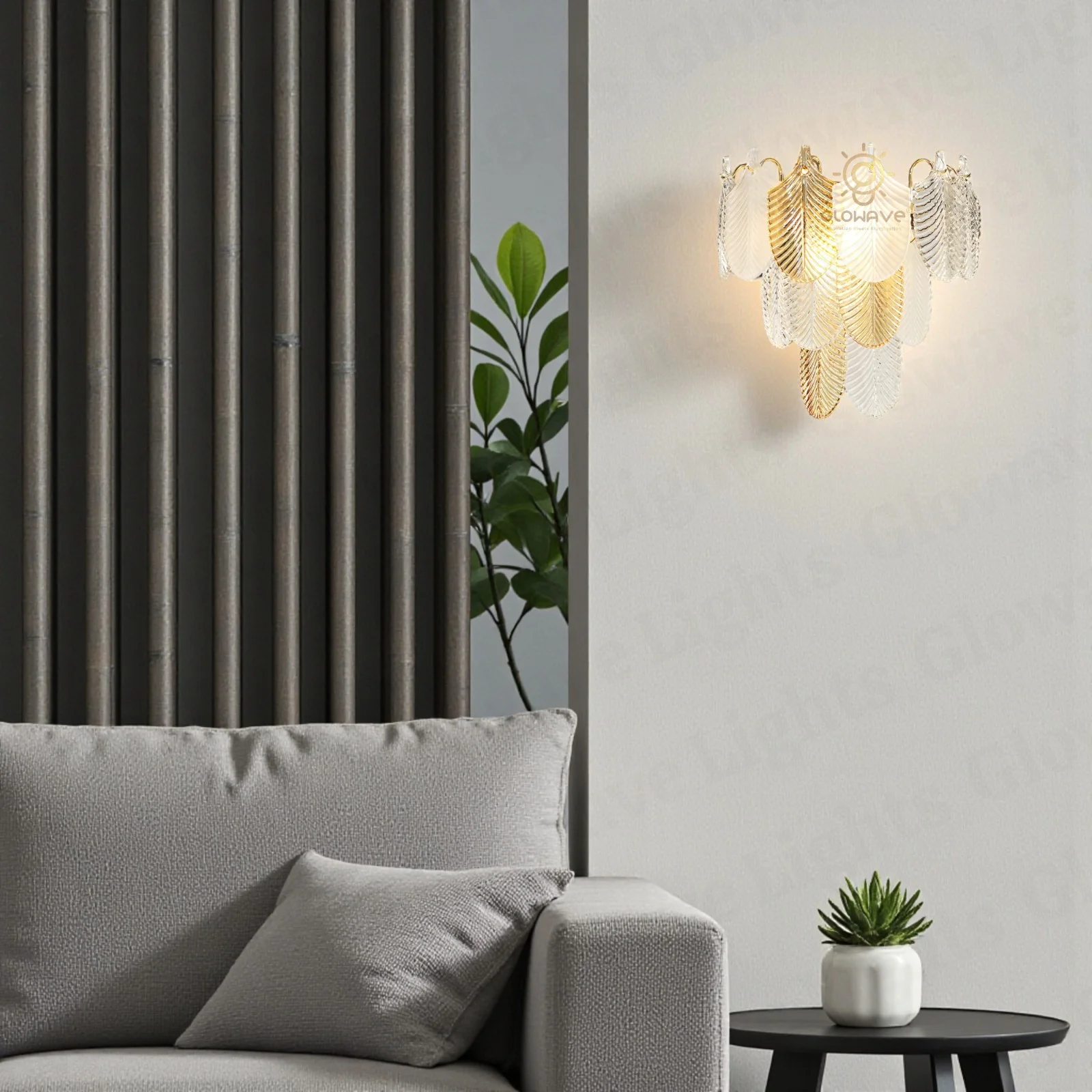 Bring artistic elegance and nature-inspired design into your interiors with this stunning acrylic leaf wall light. Crafted with beautifully shaped acrylic leaves arranged in a layered pattern, this wall lamp creates a captivating visual effect while diffusing light softly and evenly. The rich gold-finish metal framework enhances its luxurious appeal, making it a perfect statement piece for modern and premium interiors.
