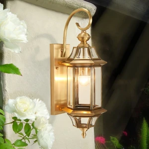 Outdoor Wall Light GD Brass Clear Glass Outside Wall Light - Warm White