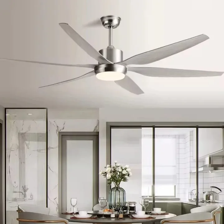Matte Silver Finish, 6 Blades Ceiling Fan with LED Light, Silent Motor, High Air Delivery