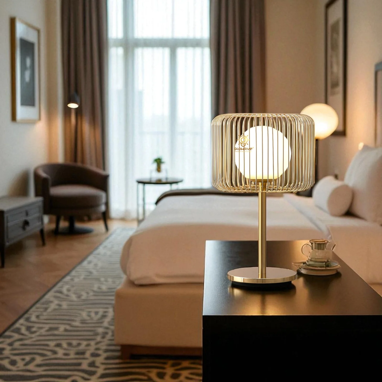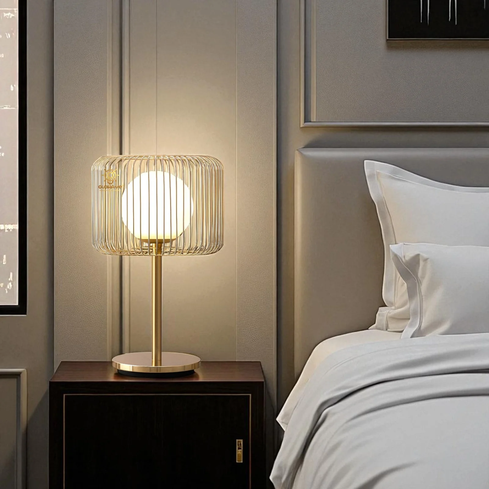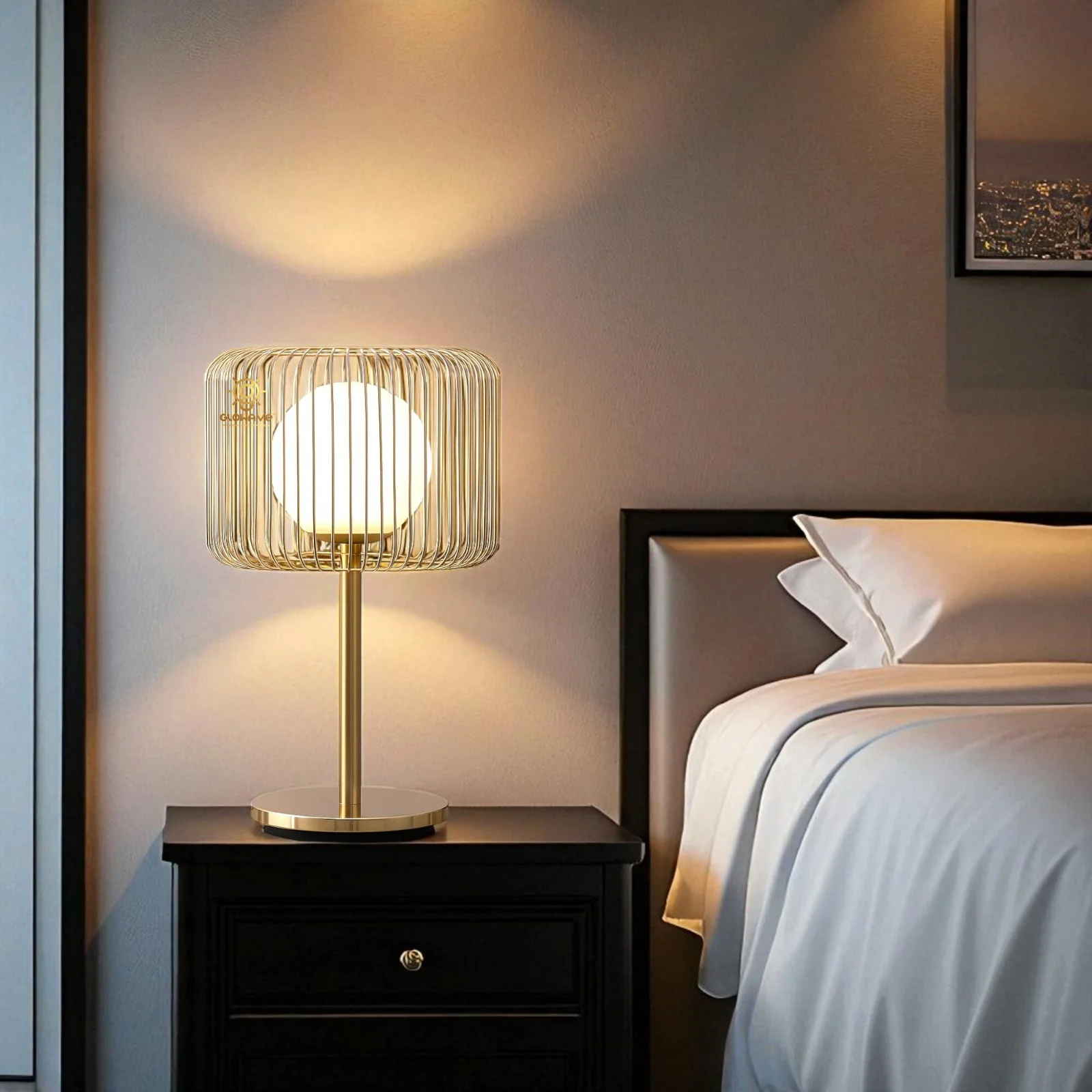 Metal Cage Shape Shade Golden Desk Table Lamp - Warm White