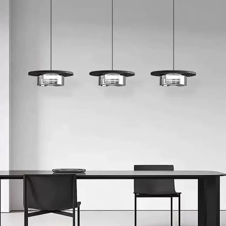 Bring understated elegance to your interiors with this modern minimalist disc pendant light, designed to complement contemporary living spaces. Featuring a sleek black metal disc paired with a clear glass diffuser, this hanging light delivers a perfect balance of style and functionality. The compact, floating design creates a refined visual impact while allowing the light to softly radiate downward for a warm and inviting ambience.