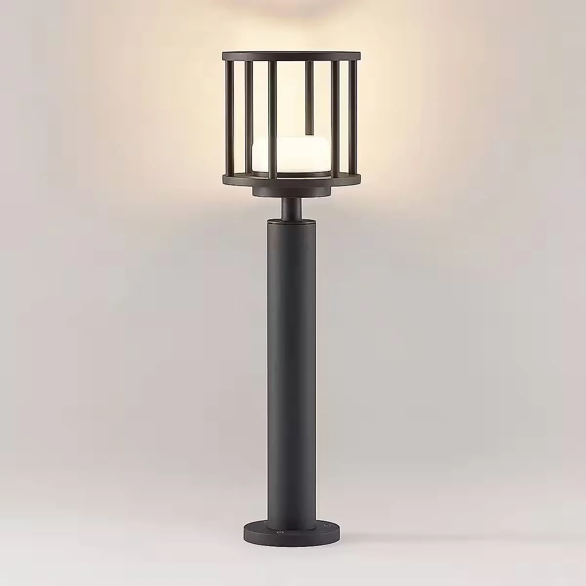 Outdoor 600mm Sand Black Cylindrical Cage Bollard Garden Path Light - Warm White (788 Big)