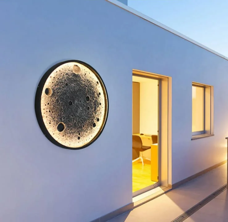 Introducing our Indoor/Outdoor Luxurious Resin Round Wall Lamp – a beacon of sophistication and functional elegance. Designed to seamlessly blend indoor and outdoor spaces, this exquisite wall lamp, known as the Moon, adds a touch of luxury to any environment. The high illumination ensures a perfect balance between brightness and energy efficiency, making it an ideal choice for both practical lighting and aesthetic enhancement. Whether installed indoors to elevate your interior decor or outdoors to accentuate your outdoor living spaces, the Black round Wall Lamp offers versatile functionality. Its understated yet impactful design contributes to the ambiance of any setting, creating a luxurious atmosphere. Illuminate your space with confidence, knowing that this wall lamp is designed for long-lasting performance. Upgrade your lighting experience with the Indoor/Outdoor Luxurious Round Wall Lamp – a perfect fusion of style and functionality. Illuminate your world with sophistication and let the Moon cast its luxurious glow on your indoor or outdoor environment. Elevate your space today.