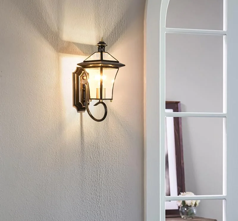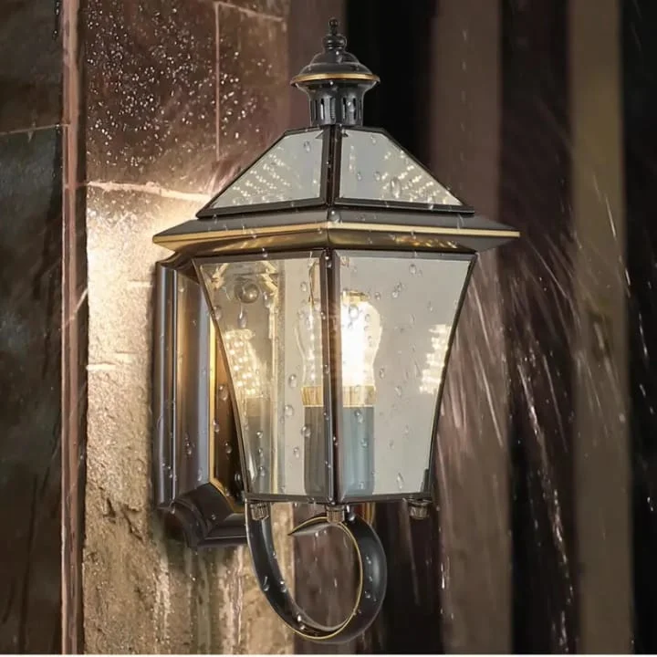 Outdoor Vintage Copper Finish Glass Shade Waterproof Wall Lamp - Warm White
