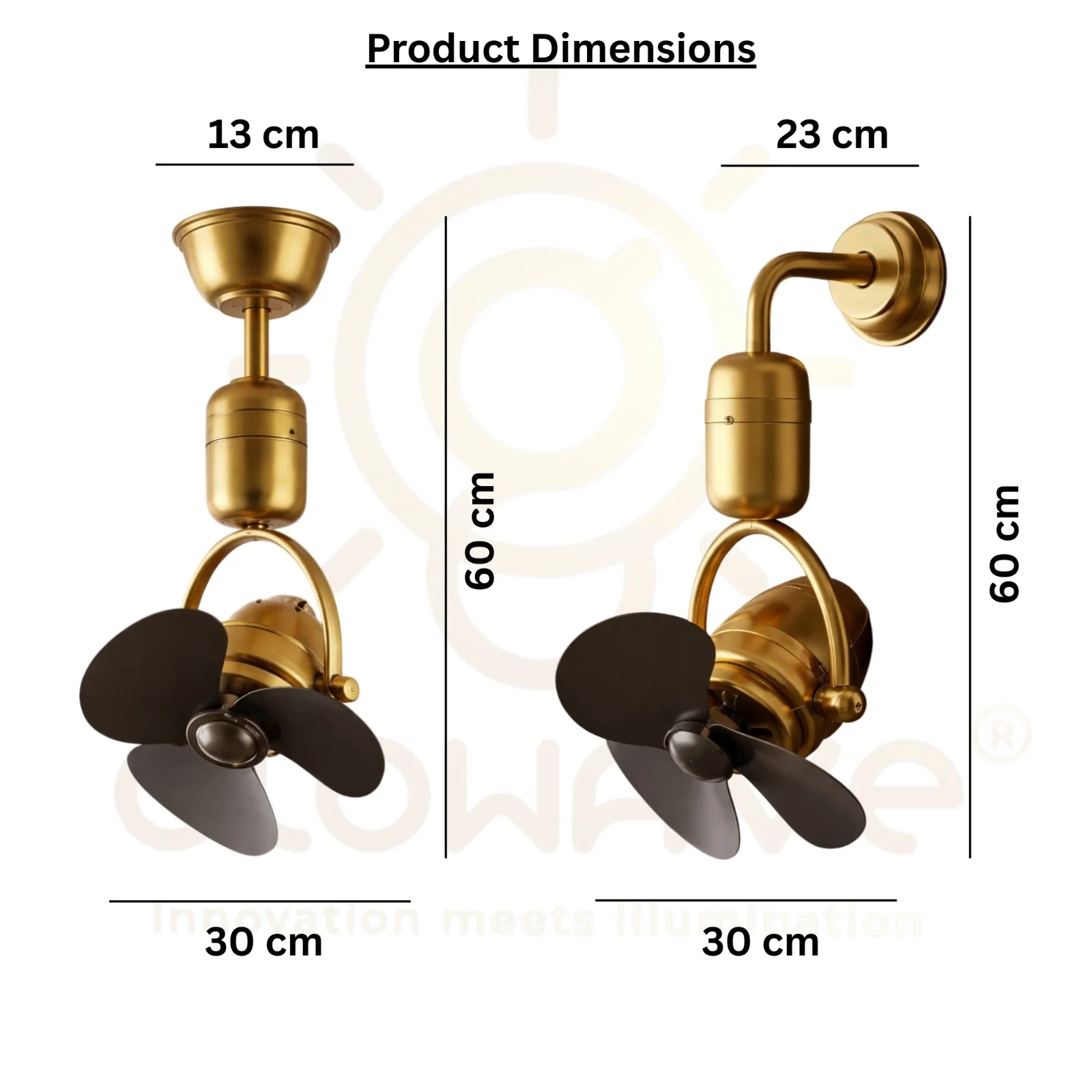 Add a touch of luxury and vintage charm to your space with the Glowave Premium Brass Wall Mounted Fan. Designed with an elegant gold finish and a stylish 3-blade structure, this fan is more than just a cooling solution—it’s a statement décor piece that enhances modern and classic interiors alike.