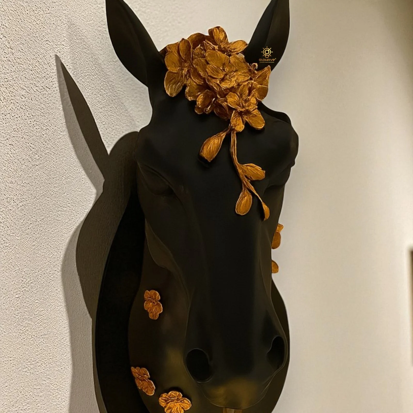 Royal 3D Horse Head Black Statue Decoration Dual Purpose Wall Lamp - Warm White (9352 BK)