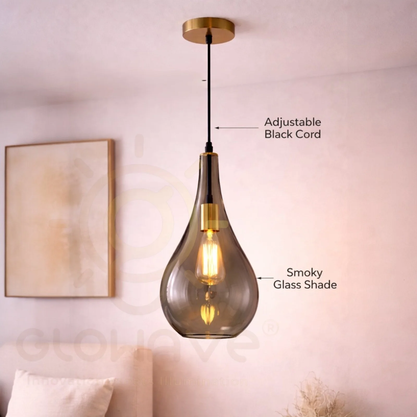 - Elegant Smoky Glass Design: Premium teardrop-shaped tinted glass creates a warm, cozy and luxurious lighting effect