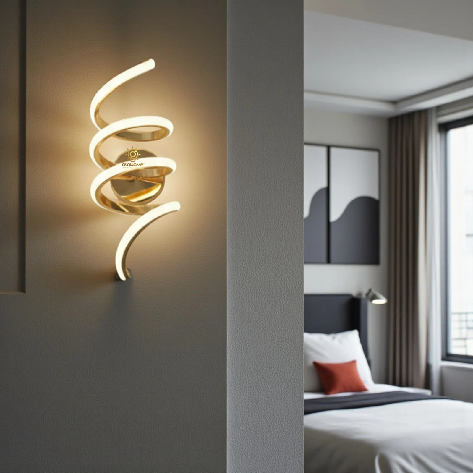 - Illuminate your space with elegance: LED Acrylic Spiral Golden Metal Wall Light.