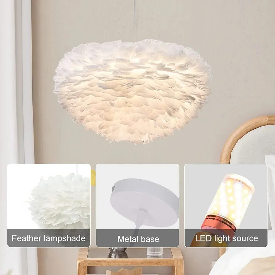 - ✨ Elegant Feather Design – Soft White feather shade brings a luxurious and delicate look to your room.