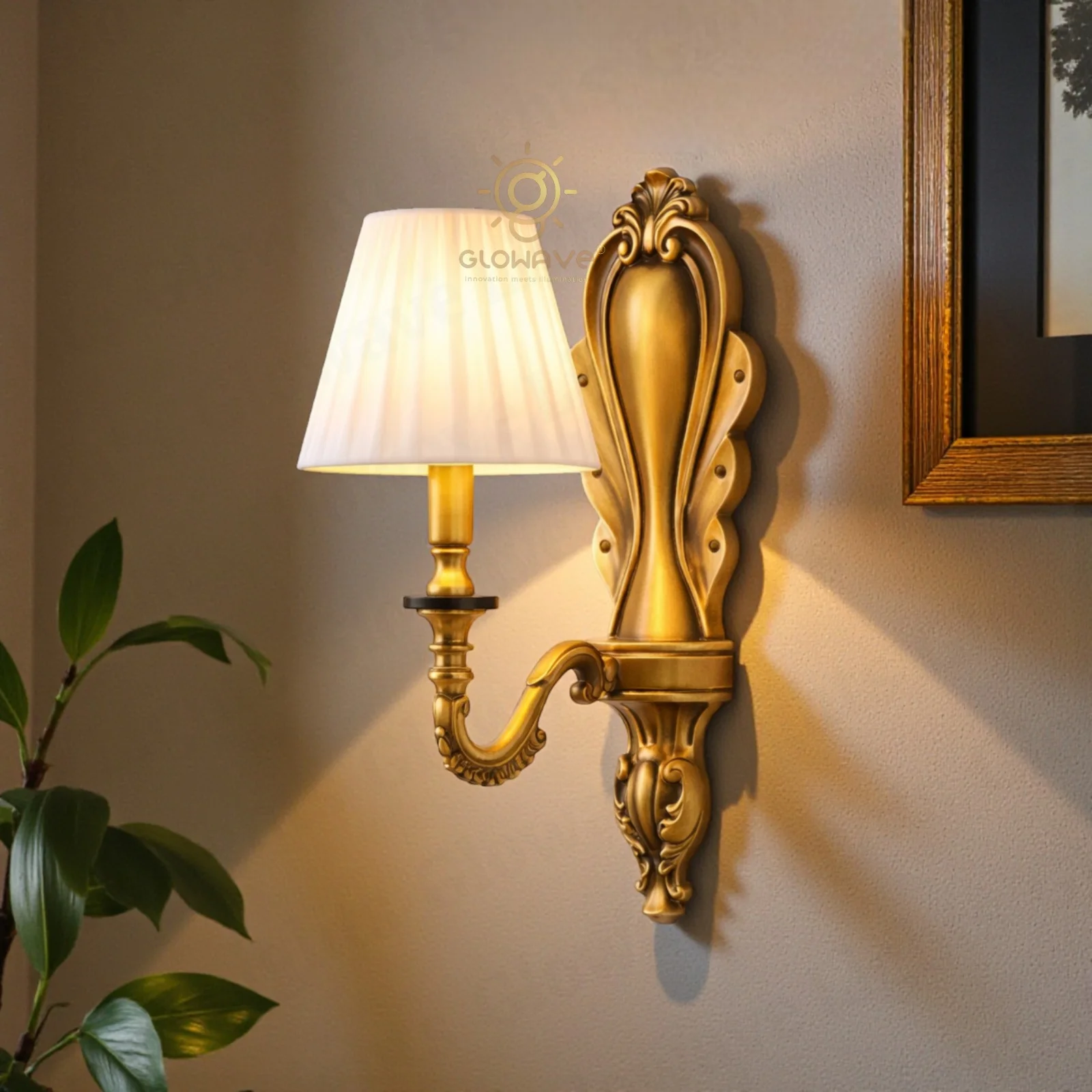Enhance your interiors with timeless elegance using this Vintage Brass Wall Light with Fabric Shade, designed to bring a warm and sophisticated ambience to any space. Featuring an ornately crafted antique brass–finish body, this wall sconce reflects classic European styling with intricate detailing and graceful curves.