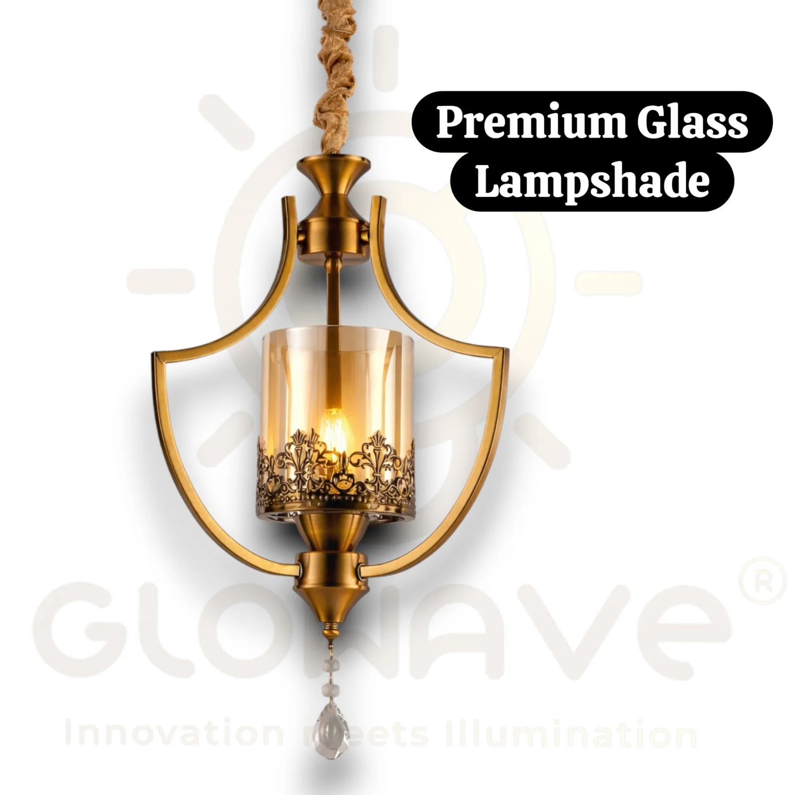 - Decorative Glass Shade: Clear cylindrical glass with intricate metal detailing