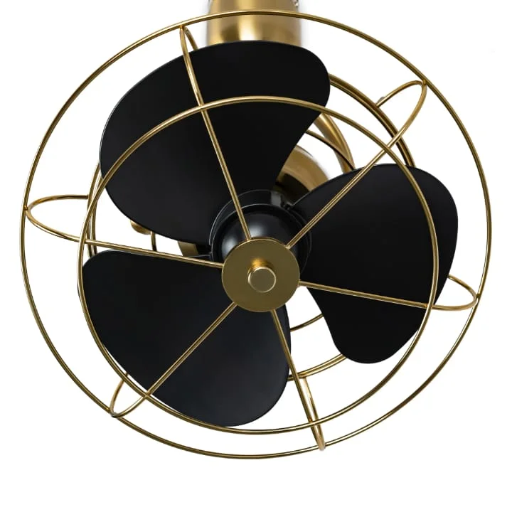 This modern wall-mounted fan combines efficient airflow with a stylish industrial design. Featuring a premium gold finish and durable metal safety cage, it adds a decorative touch while providing reliable cooling for your space. The adjustable head design allows you to easily direct airflow where it is needed, improving comfort and air circulation in the room. Built with a smooth and quiet motor, this fan is suitable for everyday use in living rooms, bedrooms, offices, cafés, and restaurants.