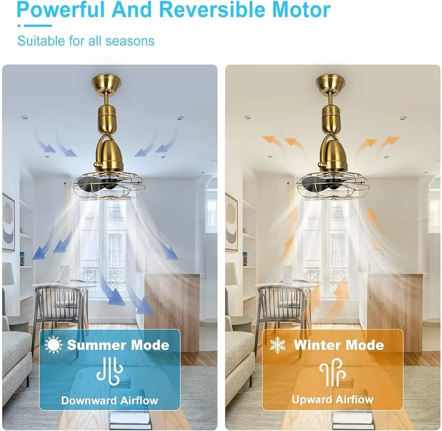 - Protective Metal Cage – Durable safety cage protects the blades while maintaining an industrial style.
