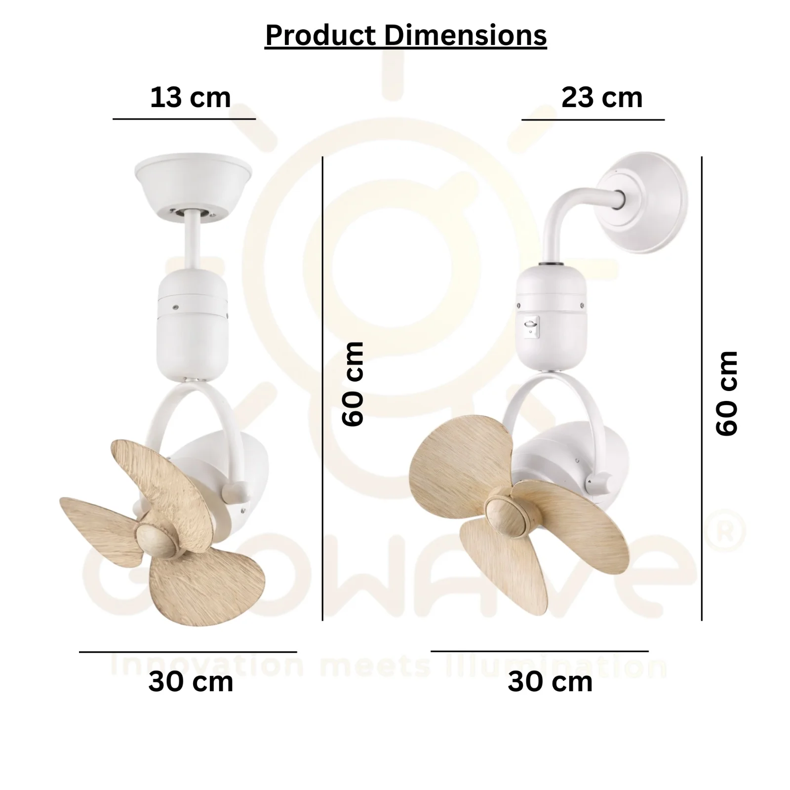 - Elegant wall mounted fan with stylish wooden finish blades that adds a premium decorative touch to bedrooms, living rooms, kitchens, and offices.