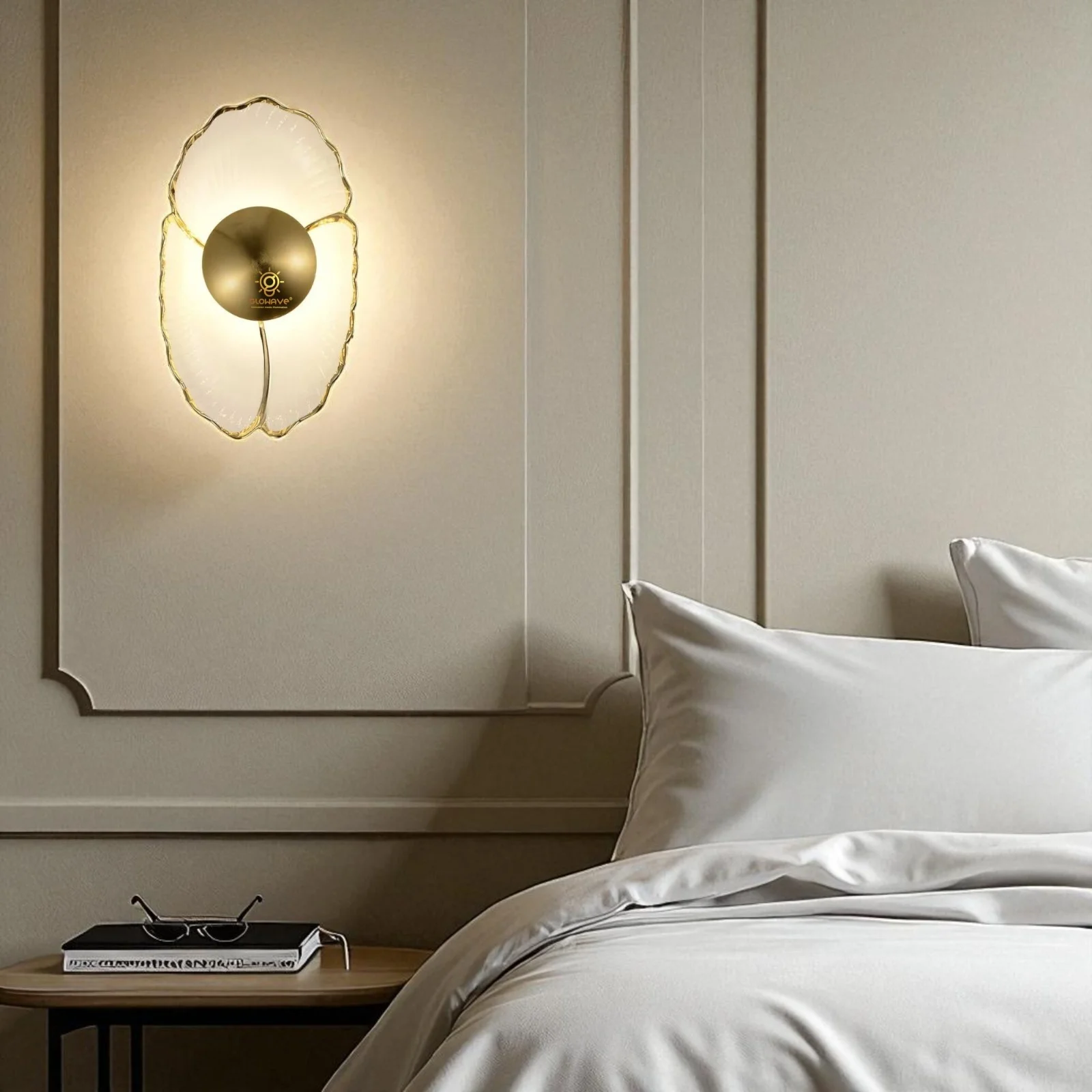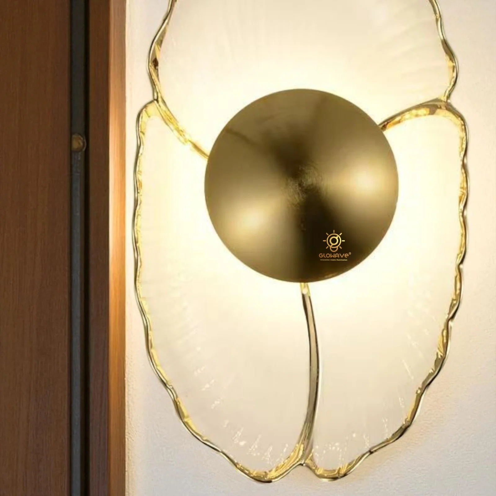 Gold Wall Sconce with Printed Glass Shade & Crystal Accent Wall Lamp - Warm White