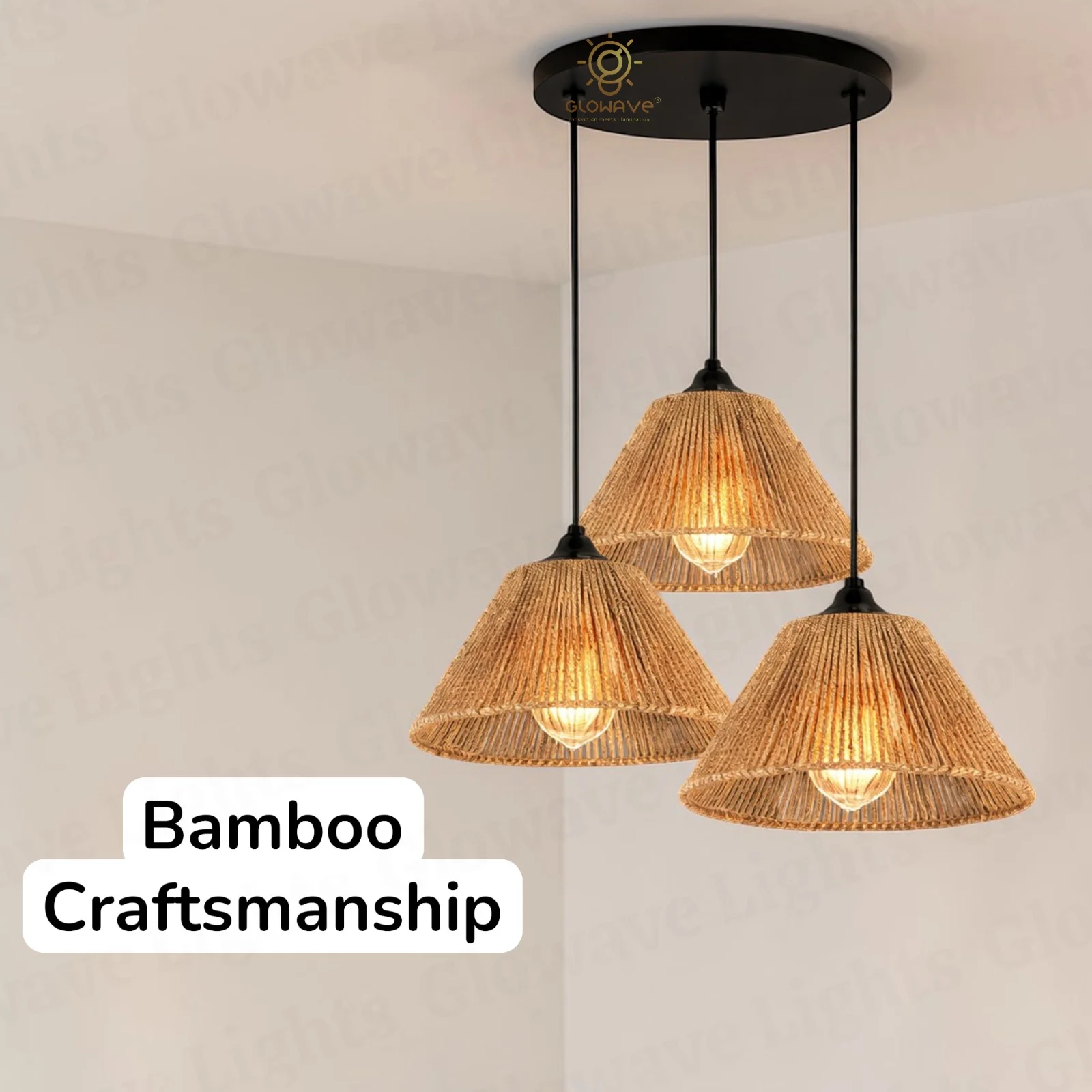 Elevate your interiors or outdoor spaces with the Glowave Modern Wooden Bamboo Rattan Shade Hanging Pendant Light—a perfect blend of nature-inspired design and warm ambiance. Handcrafted from high-quality bamboo and rattan, this pendant light exudes a serene Asian aesthetic while providing a cozy warm white glow. Ideal for living rooms, balconies, patios, or cafes, its organic texture and modern form create a welcoming and tranquil atmosphere. Whether you're enhancing your home décor or styling an outdoor retreat, this hanging light adds a touch of artisanal charm to any setting.