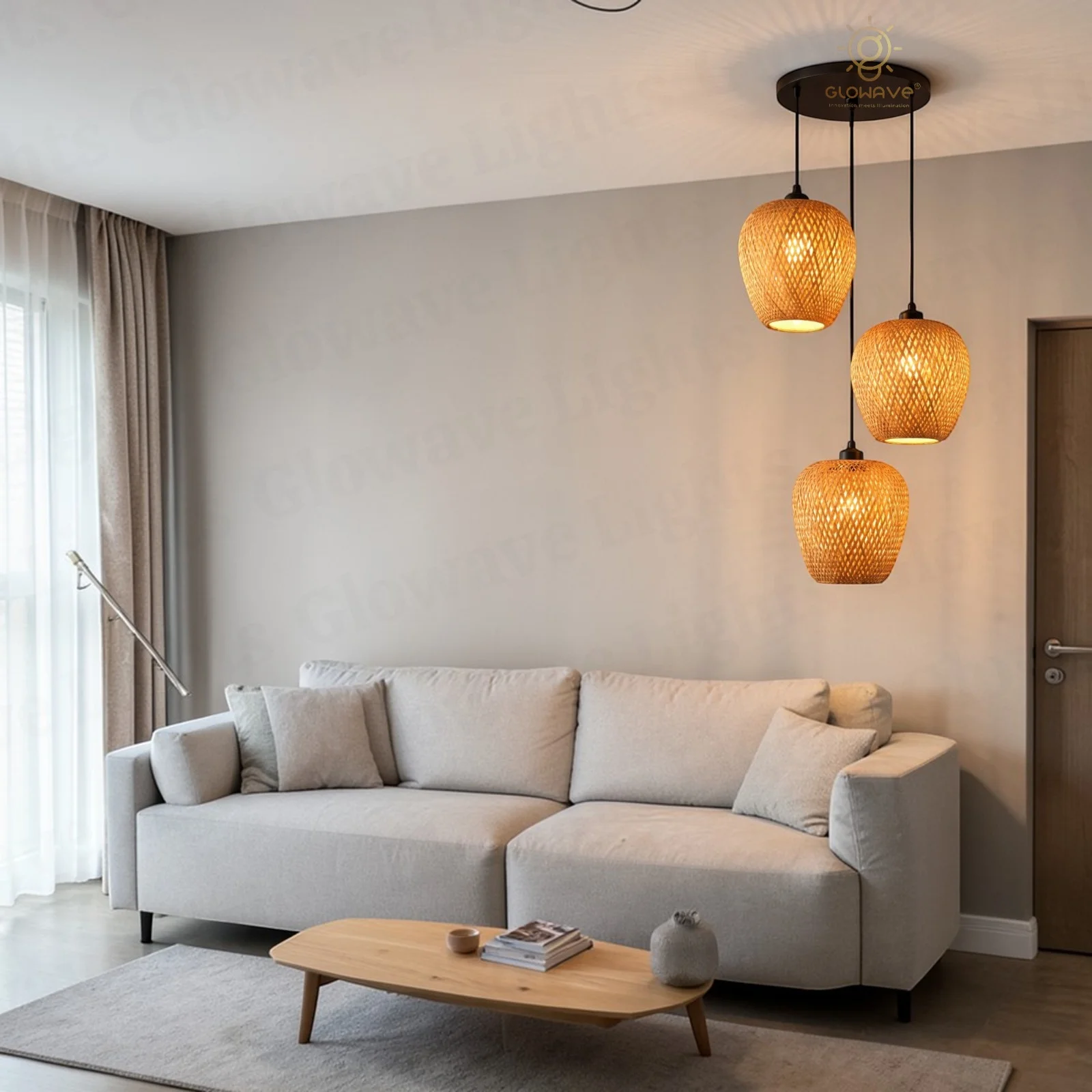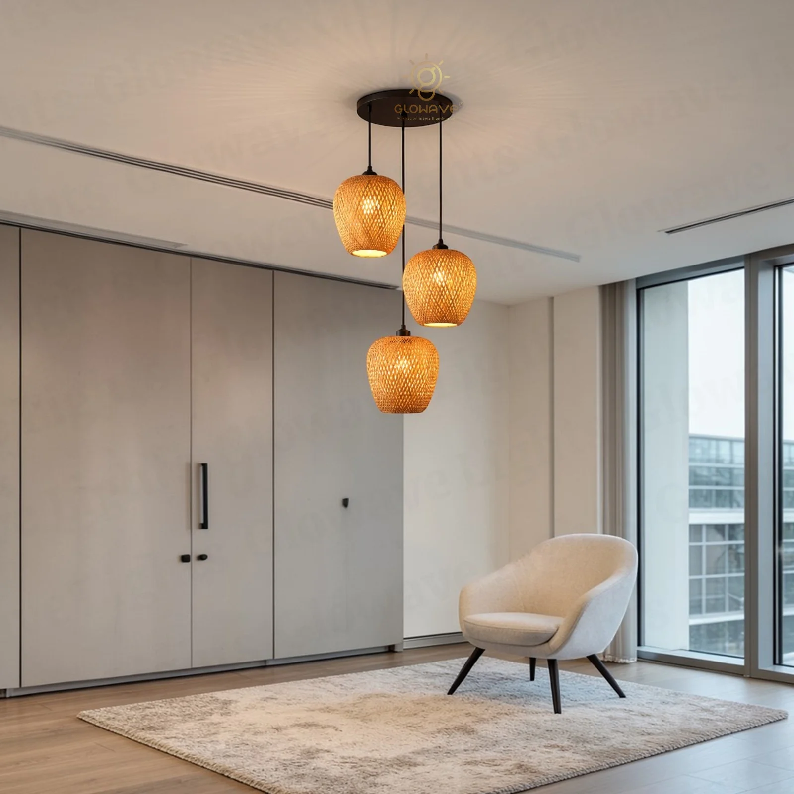 Elevate your interiors or outdoor spaces with the Glowave Modern Wooden Bamboo Rattan Shade Hanging Pendant Light—a perfect blend of nature-inspired design and warm ambiance. Handcrafted from high-quality bamboo and rattan, this pendant light exudes a serene Asian aesthetic while providing a cozy warm white glow. Ideal for living rooms, balconies, patios, or cafes, its organic texture and modern form create a welcoming and tranquil atmosphere. Whether you're enhancing your home décor or styling an outdoor retreat, this hanging light adds a touch of artisanal charm to any setting.