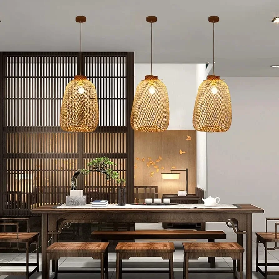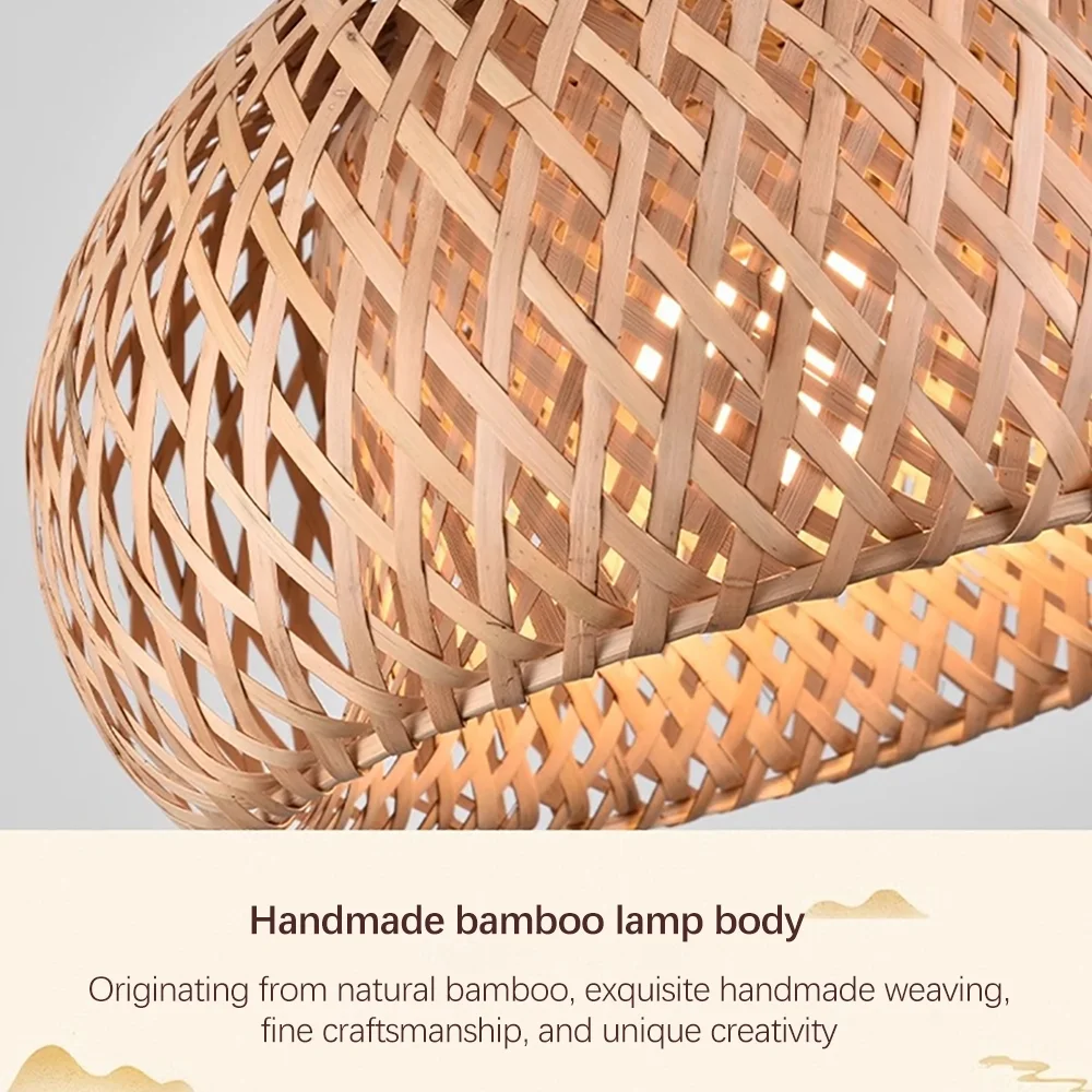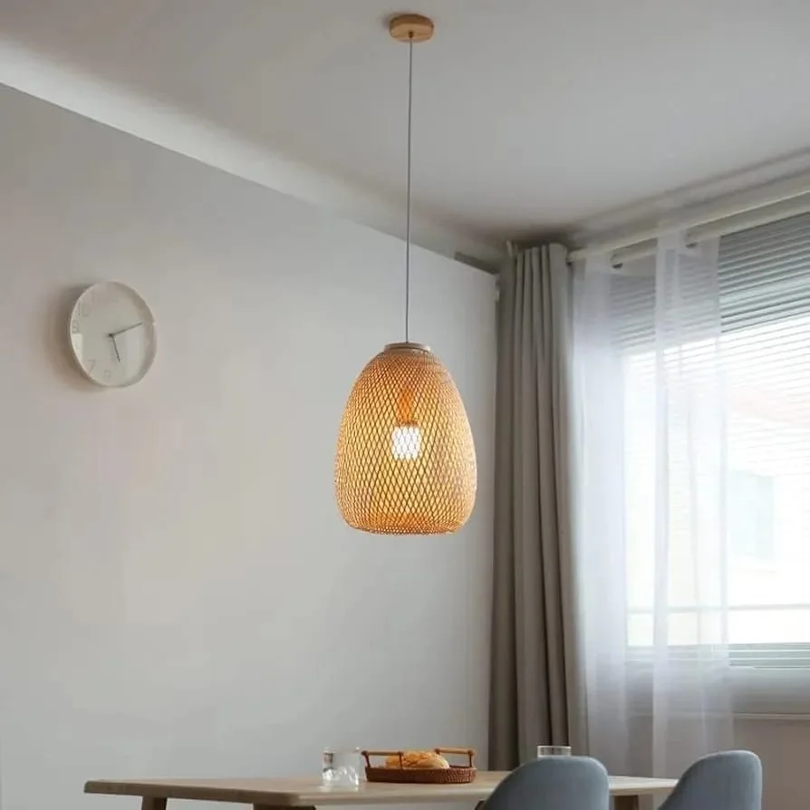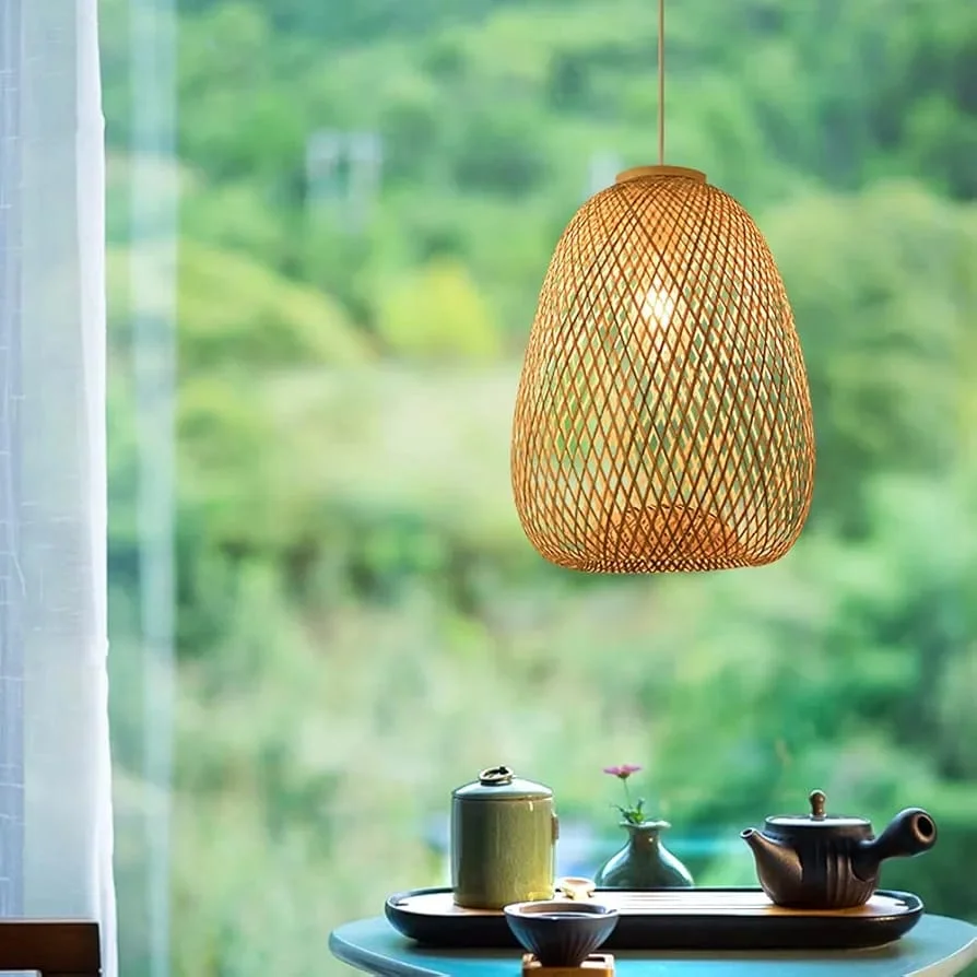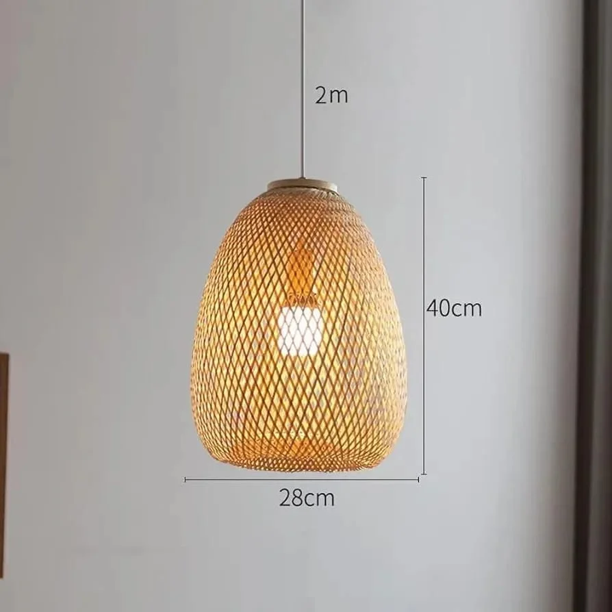 Wooden Bamboo Rattan Shade Asian Hanging Pendant Light - Warm White