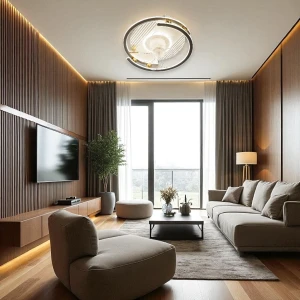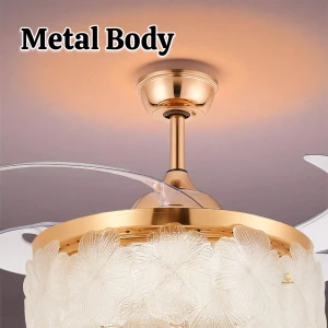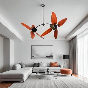 Metal Body 4 Brown Palm Leaf Wooden Textured ABS Blades Dual Ceiling Fan with (FI-7701)