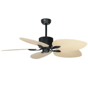 Metal Body 5 Beige Palm Leaf Wooden Textured ABS Blades Ceiling Fan (FI-7732)