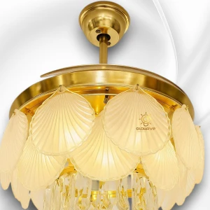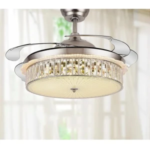 Chrome Silver 42 inch with K9 Crystal Chandelier Fan - Tricolour