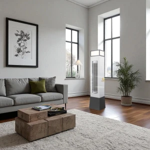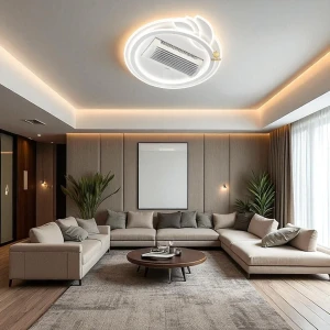 Bladeless Fan with Light Grey White Body Ceiling Fan Lamp Remote Control - Tricolour (FS 2488)