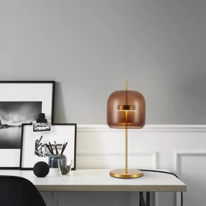 Smoky Glass Shade Golden Base Desk Table Lamp - Tricolour (Smoky 4126)