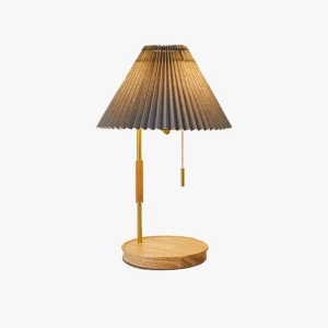 Retro Desk Lamp Pleated Fabric Lamp Cover with Pull Chain - Warm White (Grey T-2032)