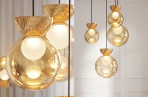 European Golden Amber Glass Set of 3 Pendant Hanging Light - Warm White