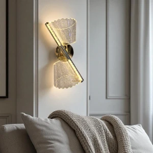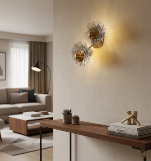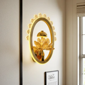 Crystal Glass Golden Flower Wall Lamp - Tricolour