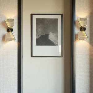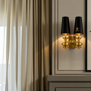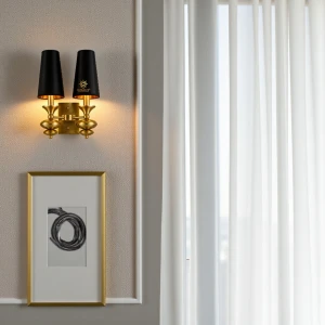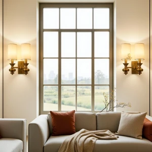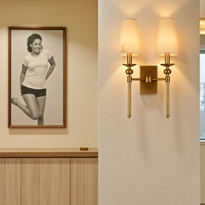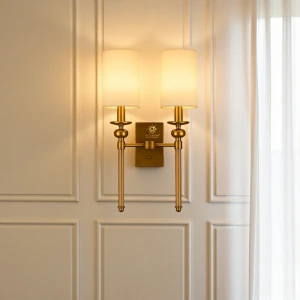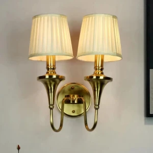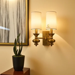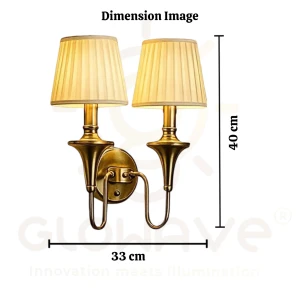 Gold Finish Dual Head Fabric Lampshade Wall Lamp - Warm White