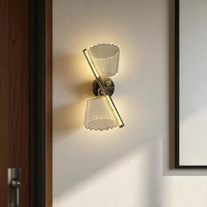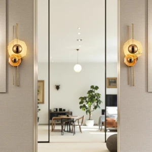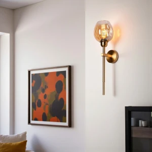 Creative Double Head Amber Glass Golden Finish LED Light Wall Lamp - Warm White