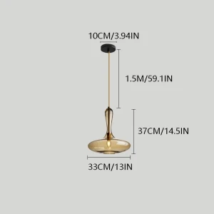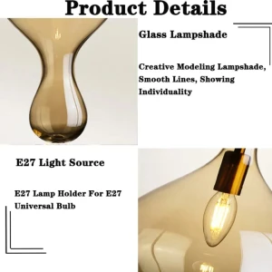 Stylish Drop Shape Amber Glass Pendant Hanging Lamp Light - Warm White (3321/1 - Amber )