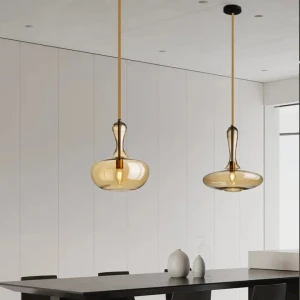 Amber Glass Pendant Lamp Hanging Light - Warm White