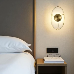 Gold Finish Ceramic Plate Round Light Wall Lamp - Warm White