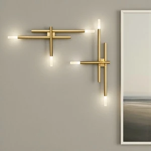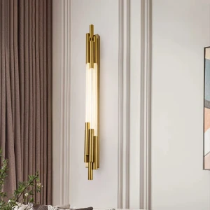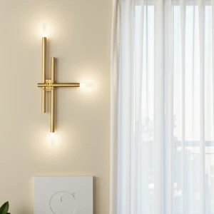 Gold Geometric Pattern 3 LED Light Long Tube Wall Lamp - Tricolour